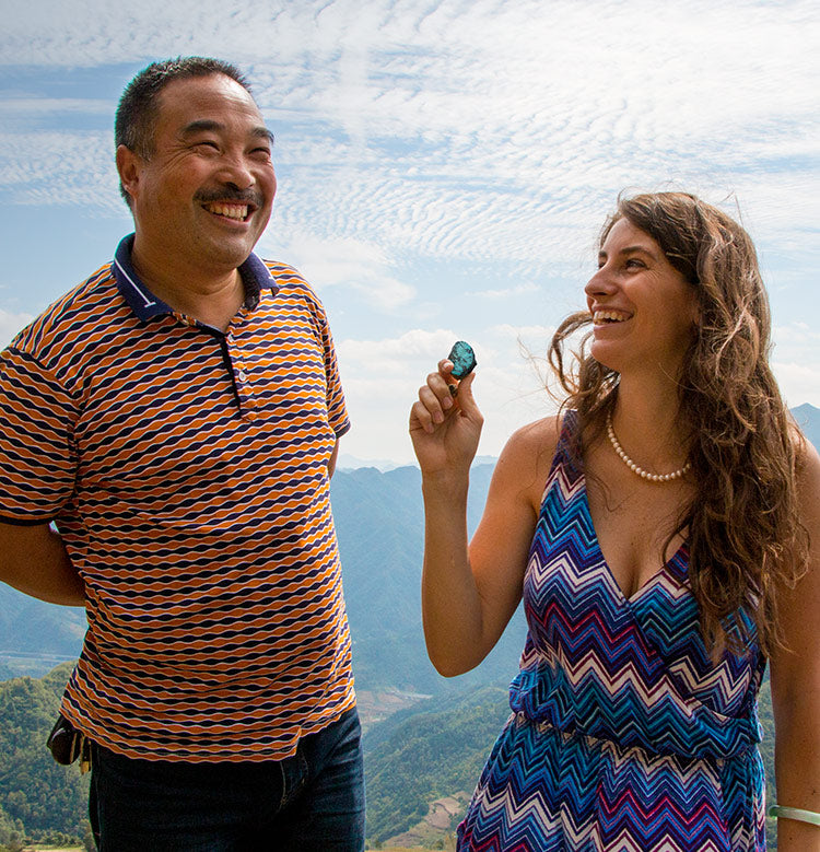 We journeyed to the top of Cloud Mountain, where turquoise has been mined for a thousand years, originally to outfit Emperors. Here we met turquoise miners and developed a supply source for our gems.